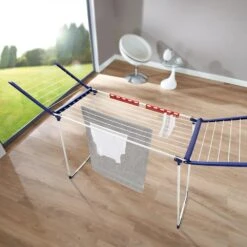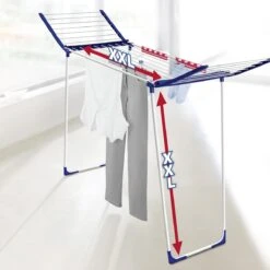 Ben jij zelf lang of draag je veel jurken, rokken of lange blazers? Het Leifheit frame is wel 1,1 meter hoog en beschikt over uitklapbare vleugels van 1,28 meter hoog! Alles past op de drooglijn zonder de vloer te raken en jij hoeft te bukken.