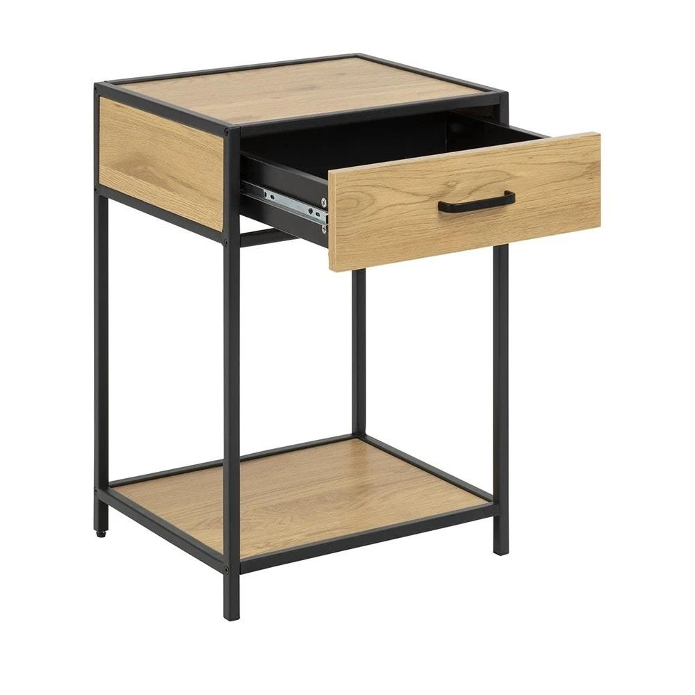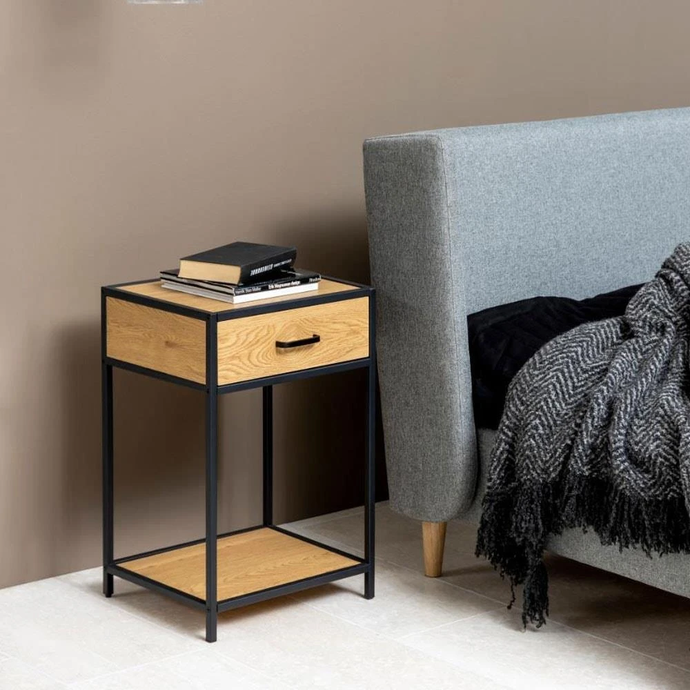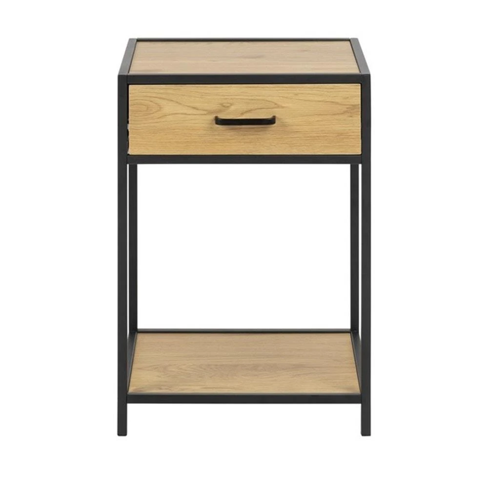 Het Vic nachtkastje van Lisomme heeft, dankzij haar gepoedercoat metalen frame in combinatie met het eikenhouten fineer laagje, een industriële uitstraling en vormt een geweldige aanvulling op je slaapkamer.