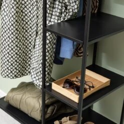 Hoe stoer is de Jaxon van MOOS! Eigenlijk kan jouw interieur niet meer zonder een mooie kast als deze.Het frame is gemaakt van een stevig materiaal en er is veel opbergruimte voor jassen, schoenen, tassen en andere accessoires. Ideaal voor in de hal.