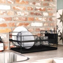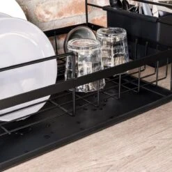 - Een stijlvol afwasrek in zwart metaal dat niet misstaat in jouw mooie keuken.