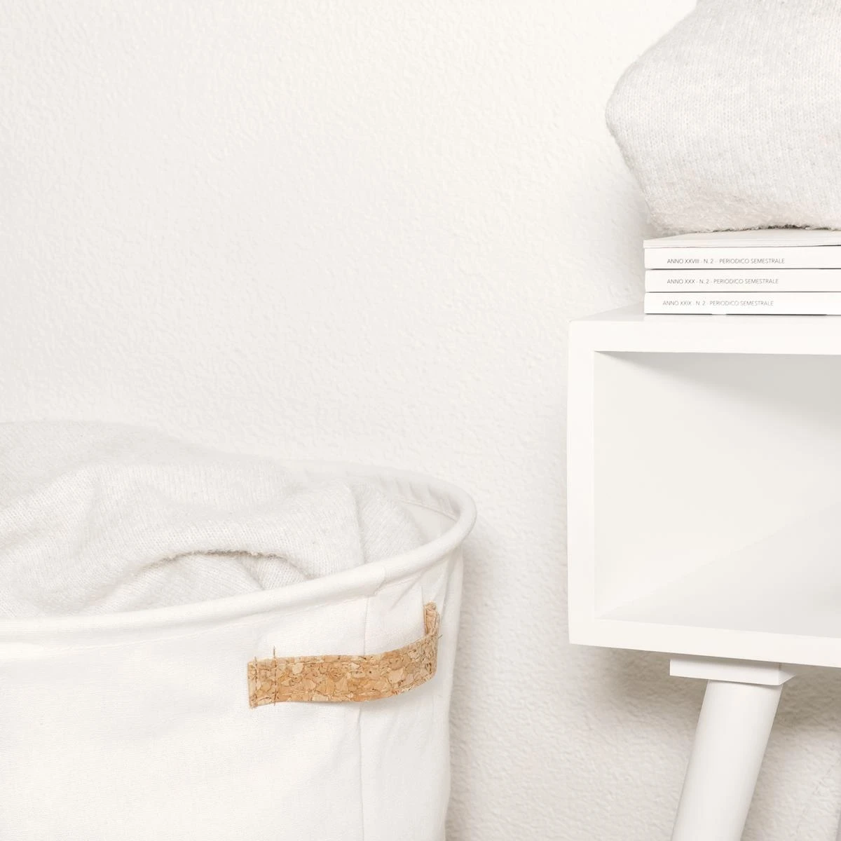 - De combinatie van katoen en kurk geeft de opbergmand een uniek uiterlijk.