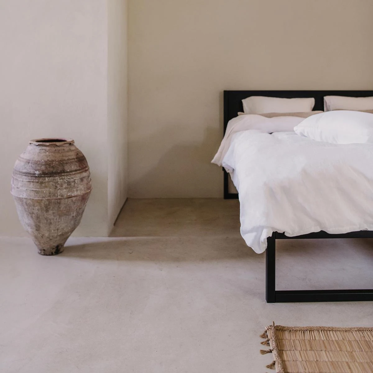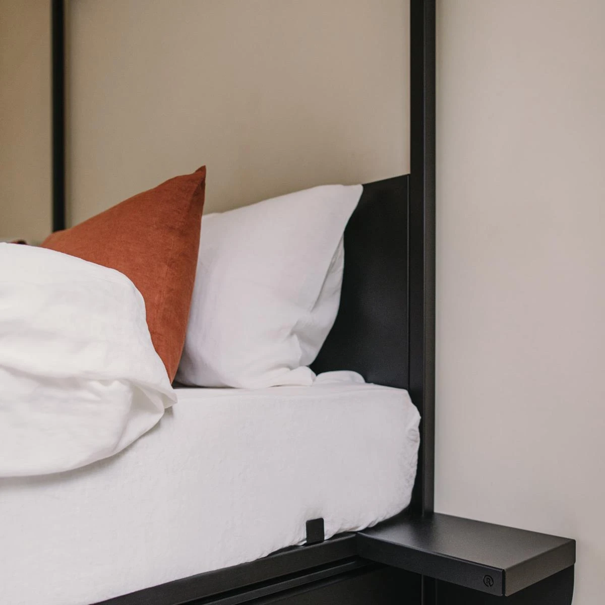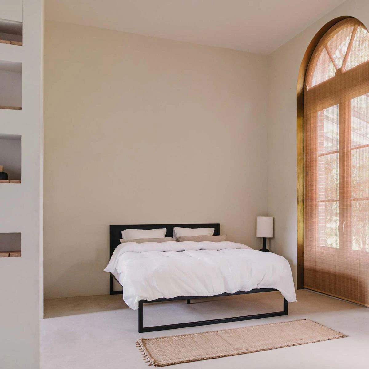 Stijlvol jouw Bedframe °01 en Bedframe °02 opmaken, zelfs als deze los in de ruimte staat. Het hoofdbord bestaat uit staal en is voorzien van een mat zwarte coating. Ontworpen en geproduceerd in Nederland om een leven lang plezier van te hebben.