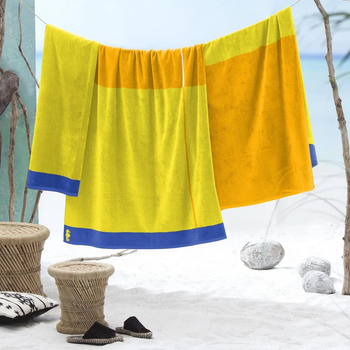 Seahorse strandlaken Block – Katoen – 100x180cm – Geel