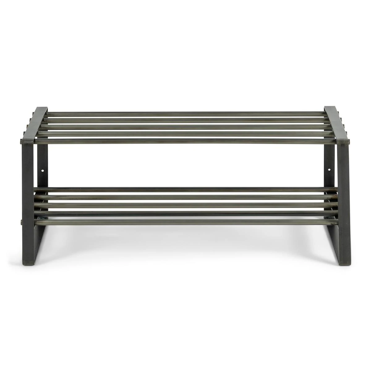 Het Rex schoenenrek van Spinder Design heeft een stoer ontwerp gemaakt van stijgerbuizen en is ideaal voor in de hal. Het rek biedt plaats voor genoeg schoenen, zo heb je geen losse schoenen meer in de hal, voortaan is het extra goed opgeruimd!