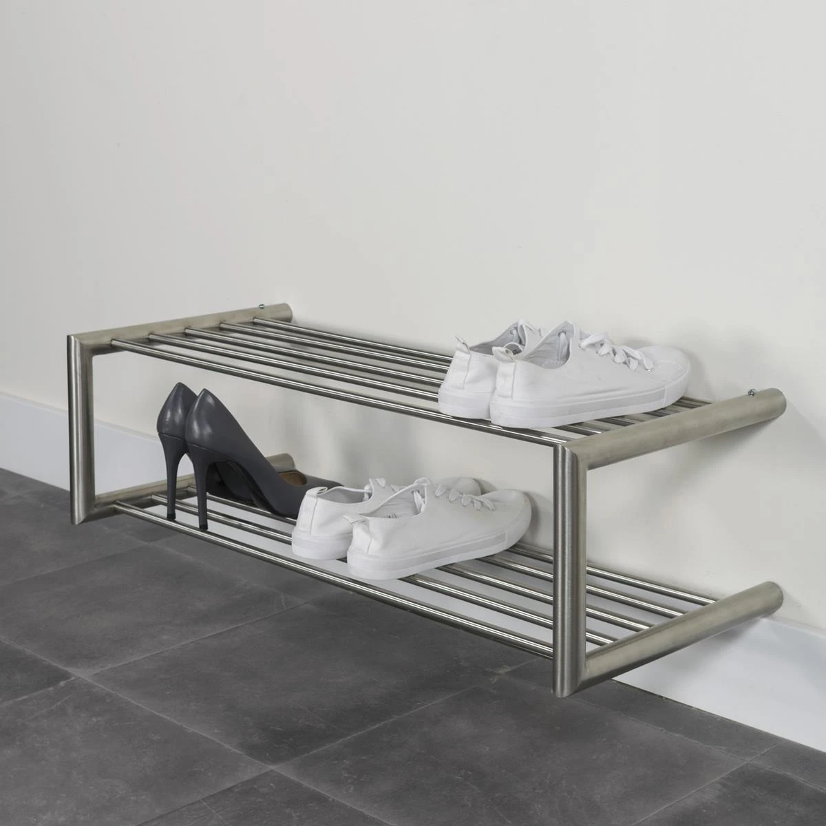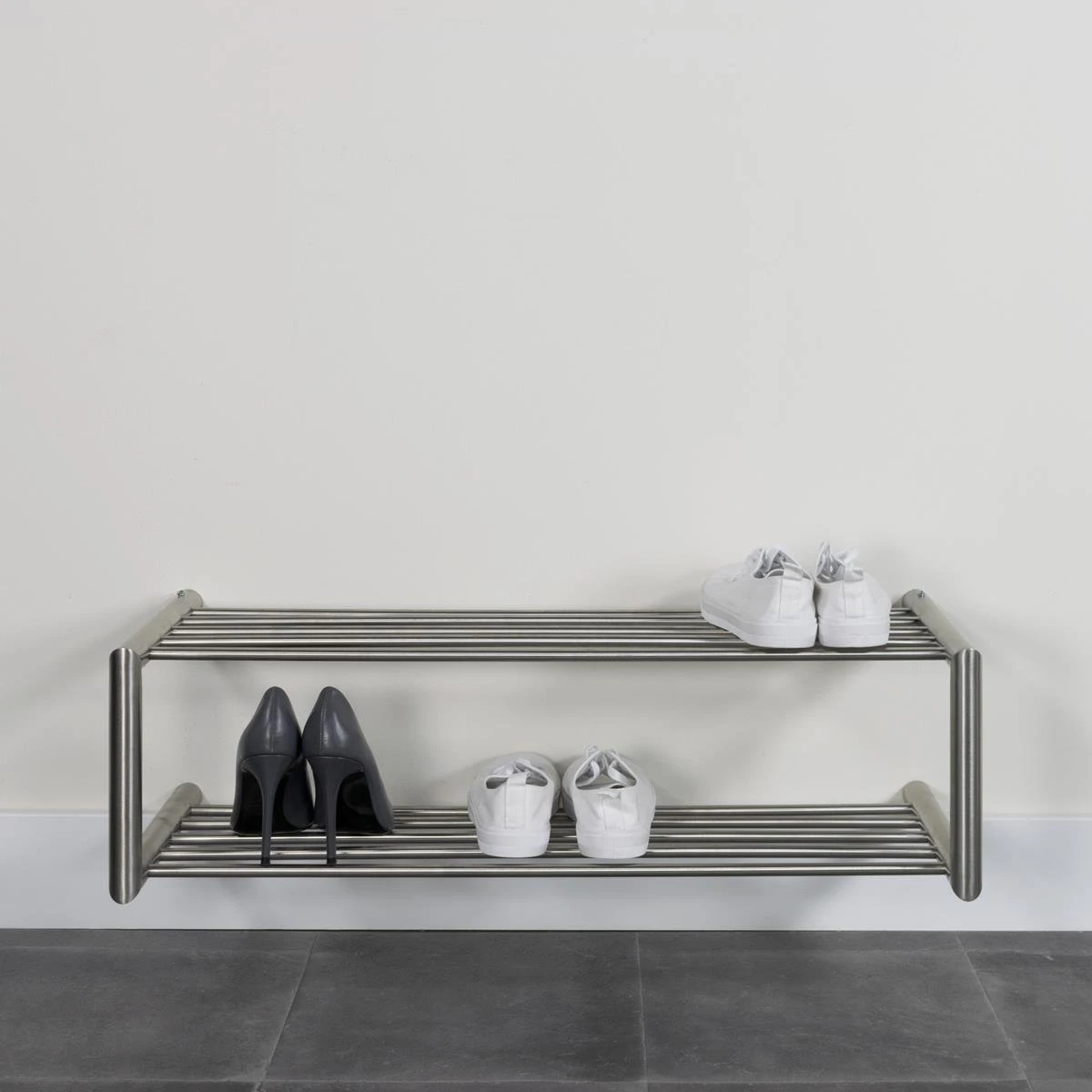 Opgeruimd staat netjes! Met dit Soenz schoenenrek van Spinder Design heb je voldoende opbergruimte voor al je schoenen. Het is gemaakt van hoogwaardig RVS en heeft een luxe en moderne uitstraling. Geen poespas, maar gewoon een prachtig schoenenrek.