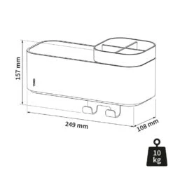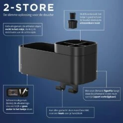 Haak voor je handdoek? Juist. Je tandenpoetsen onder douche? Geen probleem. Dit opbergbakje uit de 2-Store serie van Tiger brengt orde. Afgestemd op jouw behoefte in de badkamer: multifunctioneel en een natuurtalent in opbergen.