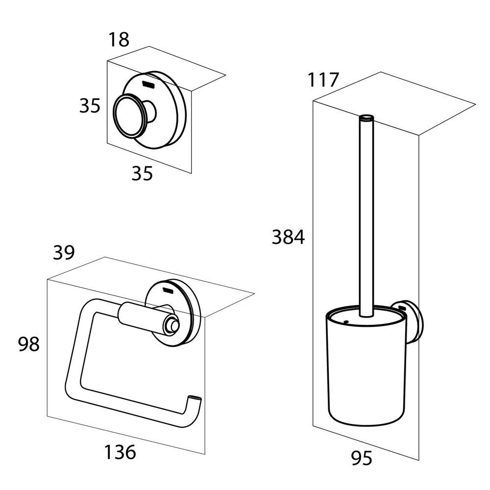 - Toiletaccessoiresset met een toiletborstel. toiletrolhouder en handdoekhaak