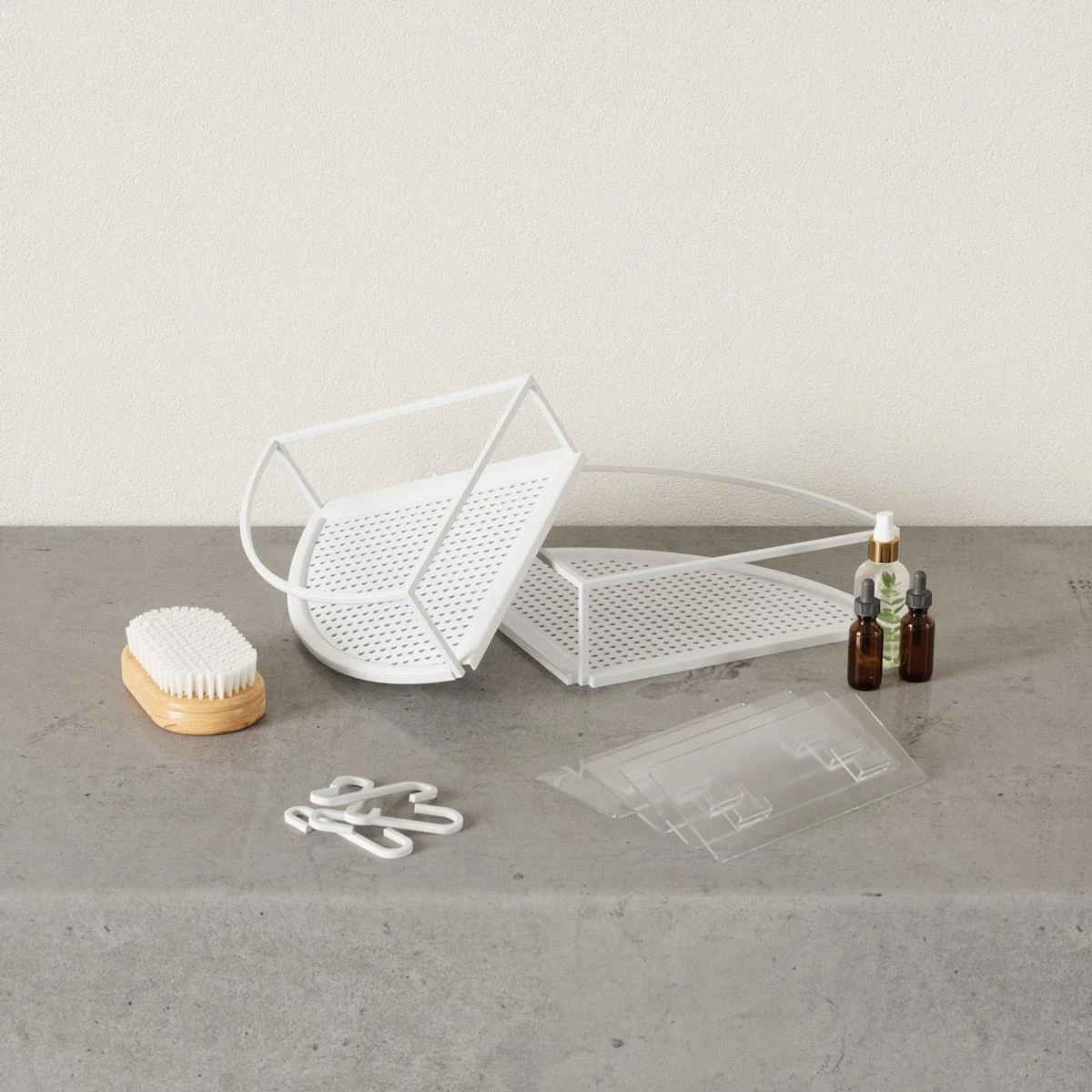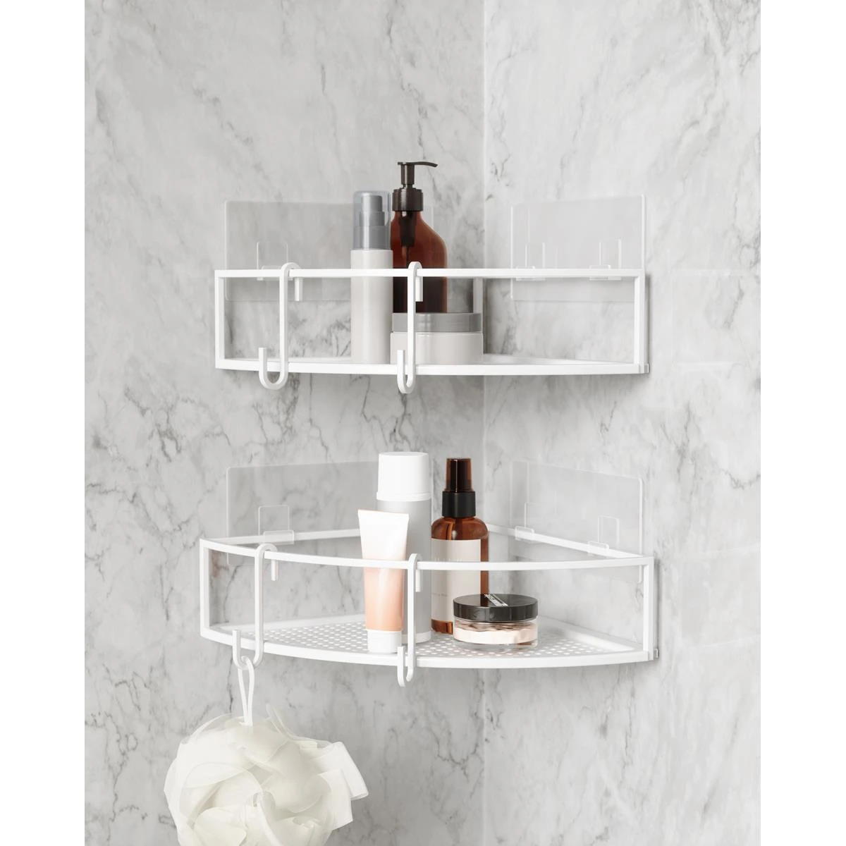 Met dit Umbra Cubiko hoekrek heb je extra opbergruimte in de badkamer. De rekjes hebben een moderne vormgeving, zijn snel en eenvoudig te monteren en hebben elk een draagvermogen van 4,5 kg. Met haken voor je washandjes of handdoekjes.