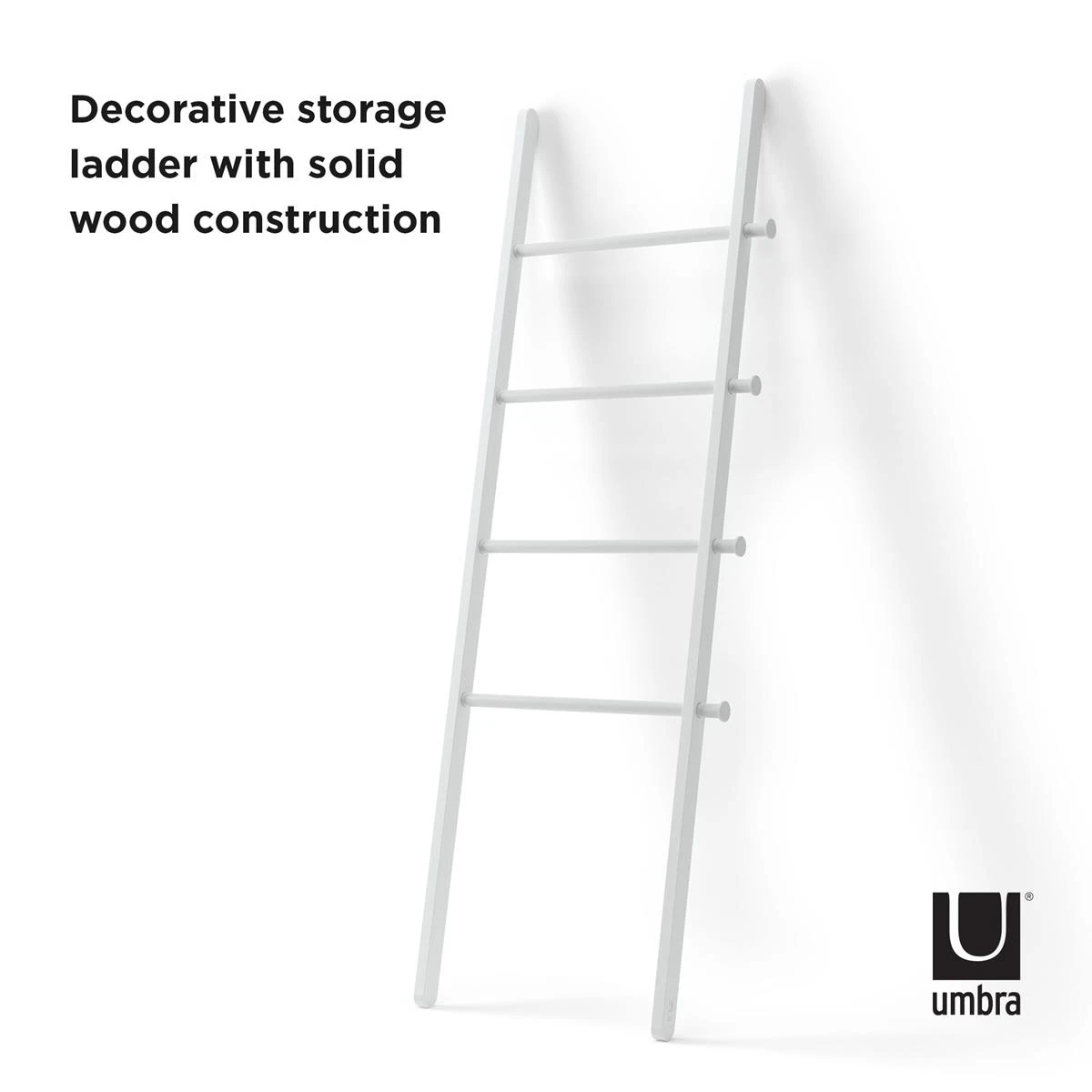De Leana ladder van Umbra is een aanwinst in de bad- of slaapkamer omdat hij zowel decoratief als functioneel is. De vier metalen sporten geven je ruimte om dekens, kleding of handdoeken op te hangen zodat deze netjes opgeborgen zijn.
