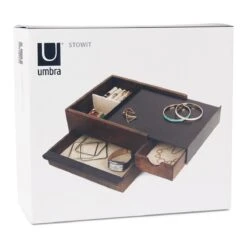 De Umbra Stowit sieradendoos heeft zijn naam niet voor niks: het functionele design is zo ingericht dat je genoeg ruimte hebt voor al jouw sieraden! Geïnspireerd op de geheime vakjes in een doos is dit, ook voor het oog, een prachtig decoratie-item.