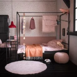 Hoe stoer is dit Bunk hemelbed van vtwonen? Het zwarte frame van metaal geeft een bijna industrieel effect, maar de ronde, zachte vormen zorgen dat hij eigenlijk in elke (kinder)kamer tot zijn recht komt. Leuk met gezellige lampjes langs het frame!