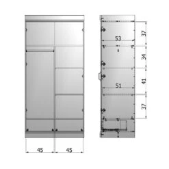 - Inclusief 3 legplanken, tussenschot en kledingroede