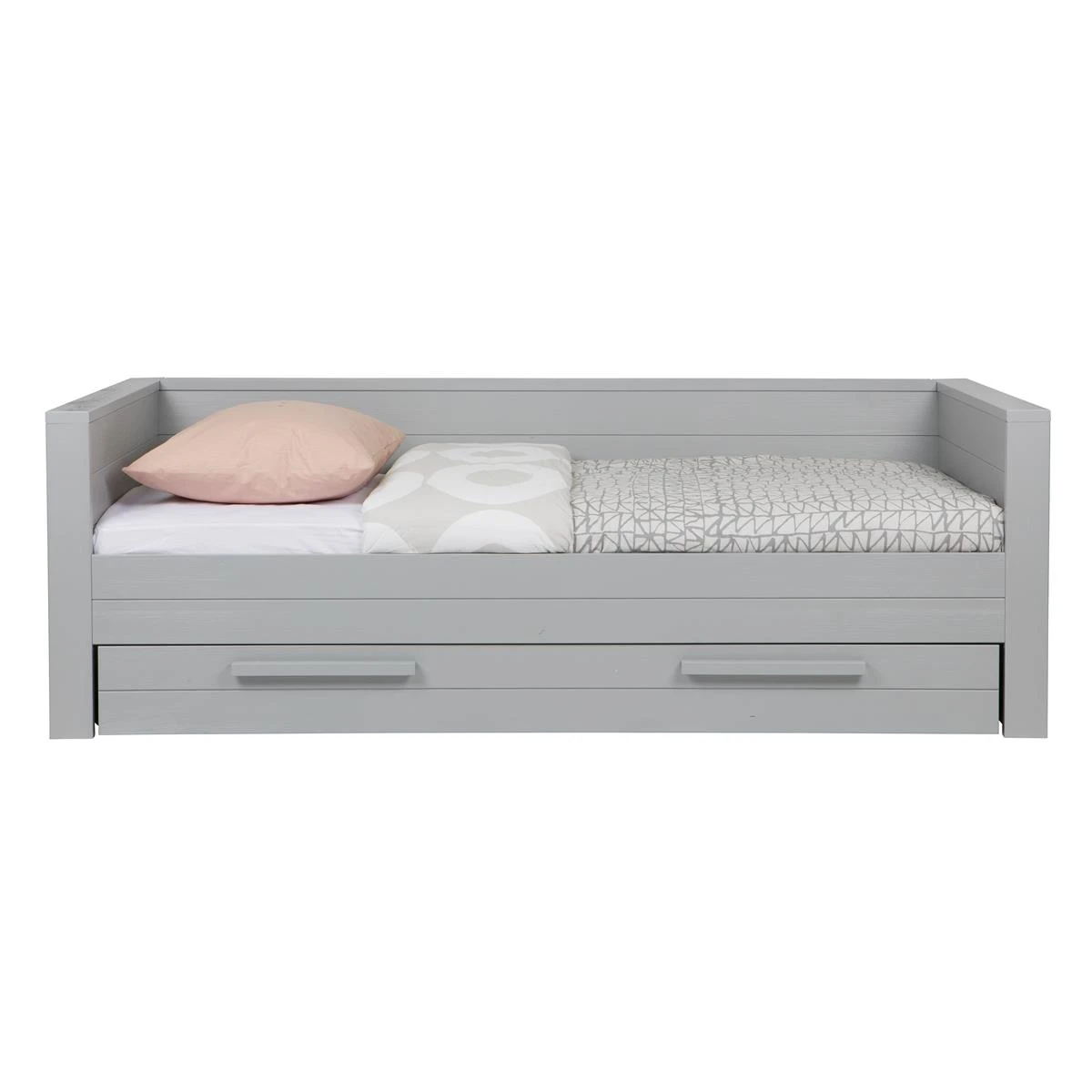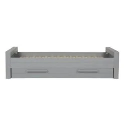 WOOOD Dennis Bed incl. matras/bedlade 219x53x95 (bxhxd) is een moderne en stoere bed voor een kinder- en tienerslaapkamer. Het Dennis bed incl. matras/bedlade is voor één-persoon en komt uit de collectie van het Nederlandse merk WOOOD. Het bed en matras/bedlade zijn gemaakt van, FSC gecertificeerd, grenenhout met een beton grijze finish en heeft een geborstelde afwerking waardoor het bed een éxtra robuuste en stoere uitstraling krijgt. De matras/bedlade wordt standaard geleverd als opberglade, maar wanneer er een lattenbodem met lint (90×200) en een matras (90x190x12) wordt toegevoegd kan de lade ook worden gebruikt als logeerbed. De Dennis bedbank wordt exclusief matras (90×200) en inclusief lattenbodem geleverd.