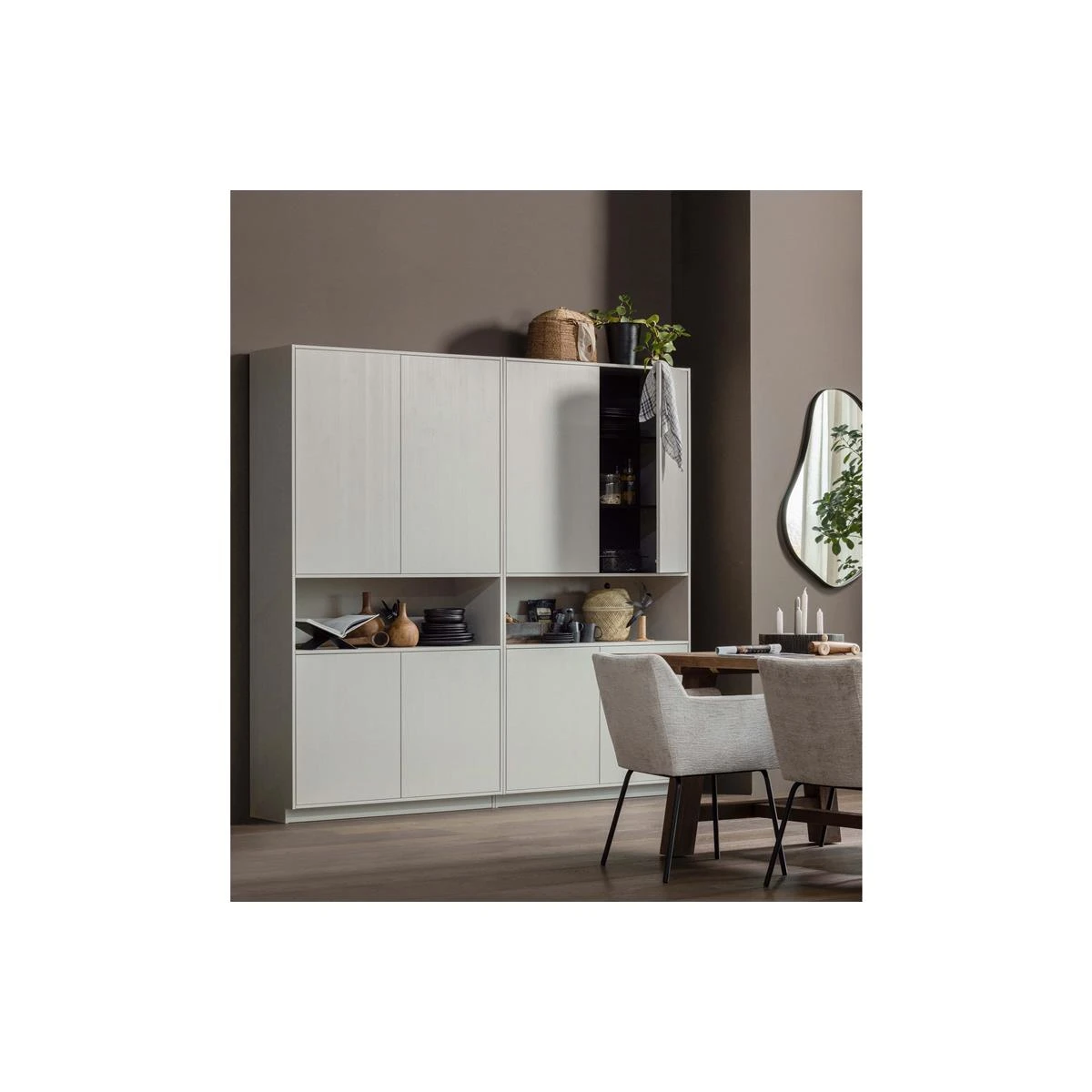 Stijlvol, tijdloos en modern. Dat zijn de tekenende kernwoorden van meubelserie Finca. De Finca serie komt uit collectie van het Nederlandse interieurlabel WOOOD en is gemaakt van natuurlijk grenenhout. Dit item is afgewerkt in een matte coating met een licht mistgrijze tint. Het strakke lijnenspel van de Finca meubelen wordt niet onderbroken door handgrepen, met een modern push-to-open systeem zijn de deuren en laden geluidloos te openen en sluiten.