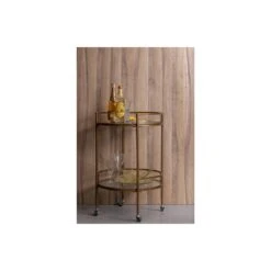De Zora trolley uit de collectie van het Nederlandse merk WOOOD Exclusive is ideaal voor de items die een mooie presentatie verdienen. Zora biedt een stijlvol podium aan bijvoorbeeld een vaas met je favoriete bloemen of een klassieke karaf met whisky en passende glazen. Door het sterke metalen frame is de Zora zeer stabiel. De vier wielen zijn geschikt voor het rollen over harde vloeren, op twee van deze wielen zit een rem. De twee glazen legplanken geven de Zora een tijdloze, trendvolle uitstraling.