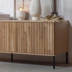 De perfecte plek om allemaal spullen in op te ruimen is het Gravure tv-meubel van Woood. Hij is namelijk niet alleen heel handig; hij is ook nog eens super mooi. Dankzij de lijnen ontstaat er een speelse, maar rustige look. Kijken en genieten dus!