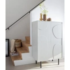 De WOOOD Cadiz opbergkast heeft een strak design met speelse twist. De mistwitte afwerking benadrukt het stijlvolle, moderne ontwerp en het organische 3D decor geeft hem net dat beetje extra’s. Stoere zwarte poten erbij en de kast is compleet!