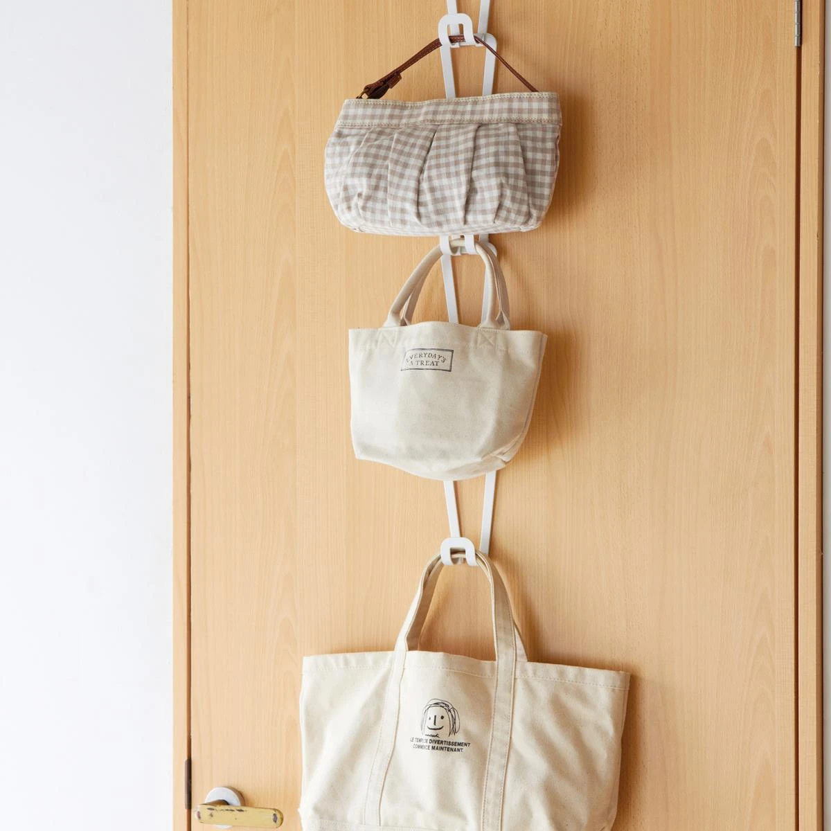 Dit Joint tassenrek van Yamazaki is de beste manier op handtassen op te bergen. Hij kan zowel in de kast of aan de deur worden opgehangen. Daarnaast zijn de componenten afneembaar en kan je de maat naar wens aanpassen, super handig!