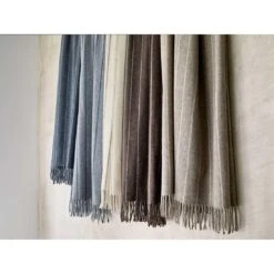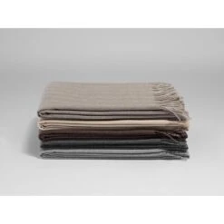 De plaid meet 130×190 cm; groot genoeg om er lekker onder te kruipen. Hij heeft een mooi contrasterend streepje en is verkrijgbaar in verschillende prachtige kleuren. De franjes zorgen voor een vrolijk accent.